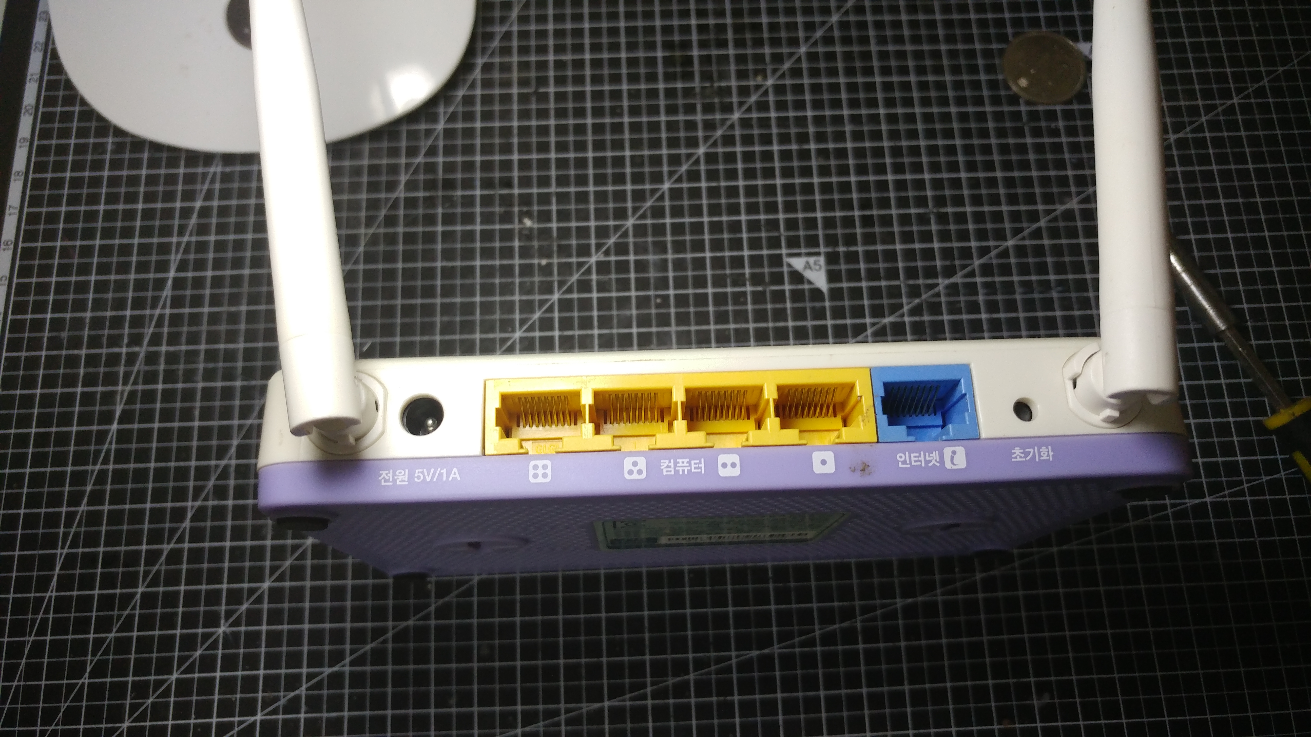 어느 제조사에서 만들었는지 잘 모르는 안테나가 2개 달린 어딜 가든 흔하게 보일법한 평범하개 생긴 유무선 공유기 입니다