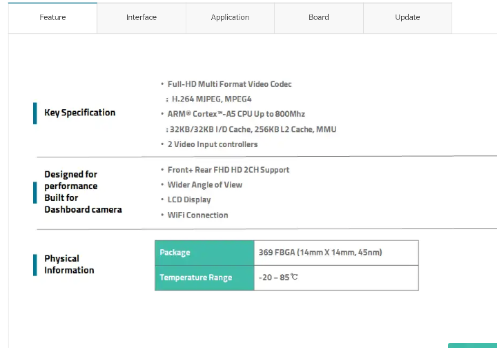 제조사 홈페이지에서 확인결과 블박용으로 계발된 칩임을 알수 있습니다